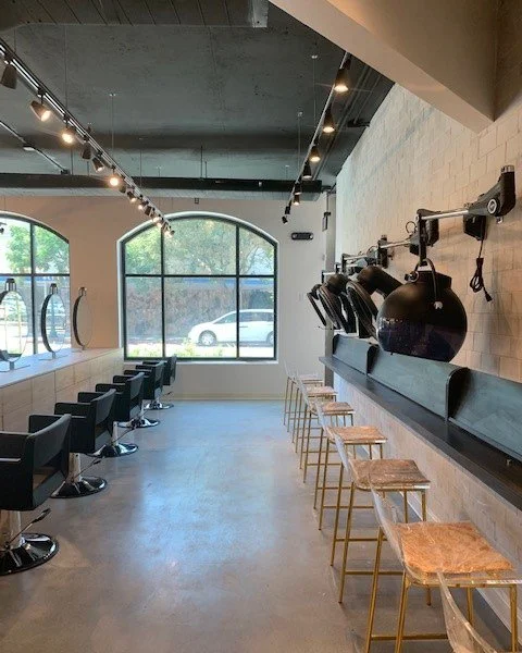Robert Nebolon Architect prepared plans for a new Hair Salon on the ground floor of an existing 4 story building. 30 Stations were required in an open office-style plan. 6 Hair shampoo/washing stations were required as well. To save costs and also to have a chic industrial/glamour environment, HVAC systems were stylized into flat oval ductwork (instead of the standard square or round ductwork) and styled flat-oval air returns that form a contemporary pattern at the high wall above the washing stations. Lighting systems were equally exposed for effect.